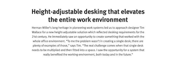 Herman Miller Atlas Sit stand desk. Designed by Tim Wallace