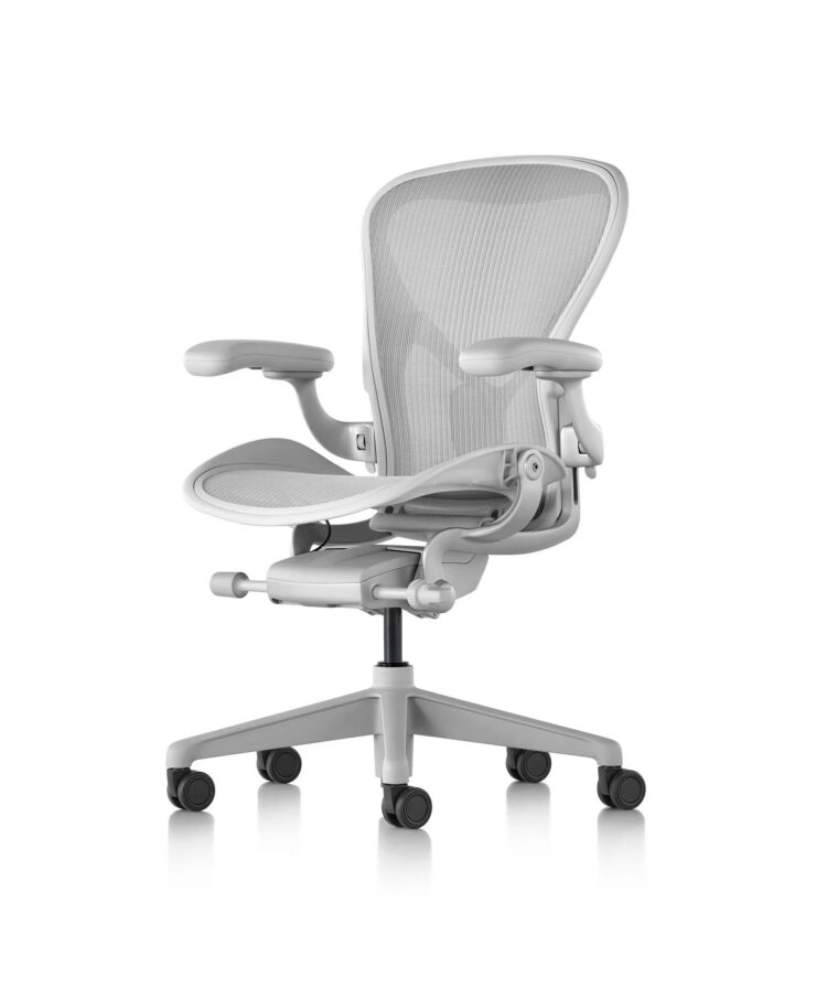 Herman Miller’s Aeron in Mineral provides a gorgeous light grey accent to any modern workspace. Along with the suspension seat and backrest in Mineral 23101, it is presented in a choice of bases including Dark Mineral DVP, Satin Aluminium SNA and Polished Aluminium CD, in the Executive spec.