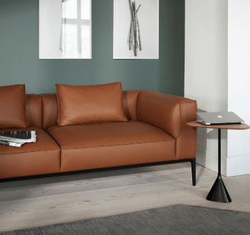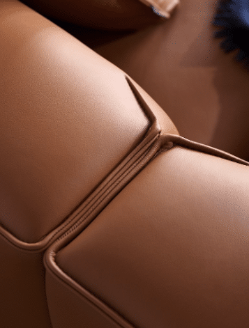 Oran is characterised by the combination of a soft appearance and feel, with a precise and defined upholstery detail, the rounded and voluminous interior of the sofa is restrained by a defined seam, that leads the eye with ease around the sofa profile, upholstered in the finest Elmosoft leather.