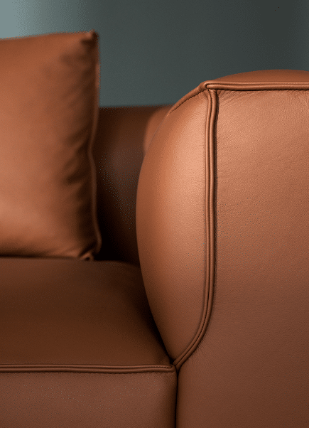Oran is characterised by the combination of a soft appearance and feel, with a precise and defined upholstery detail, the rounded and voluminous interior of the sofa is restrained by a defined seam, that leads the eye with ease around the sofa profile, upholstered in the finest Elmosoft leather.