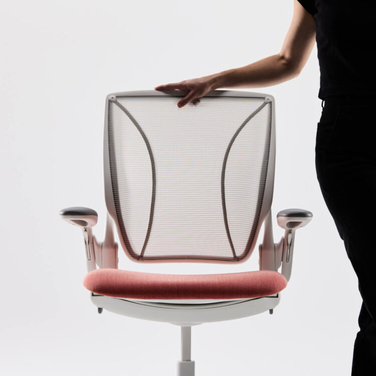 The Humanscale Diffrient World chair delivers mesh elegance with a new soft upholstered seat cushion, merging premium lumbar care with adaptability and comfort.