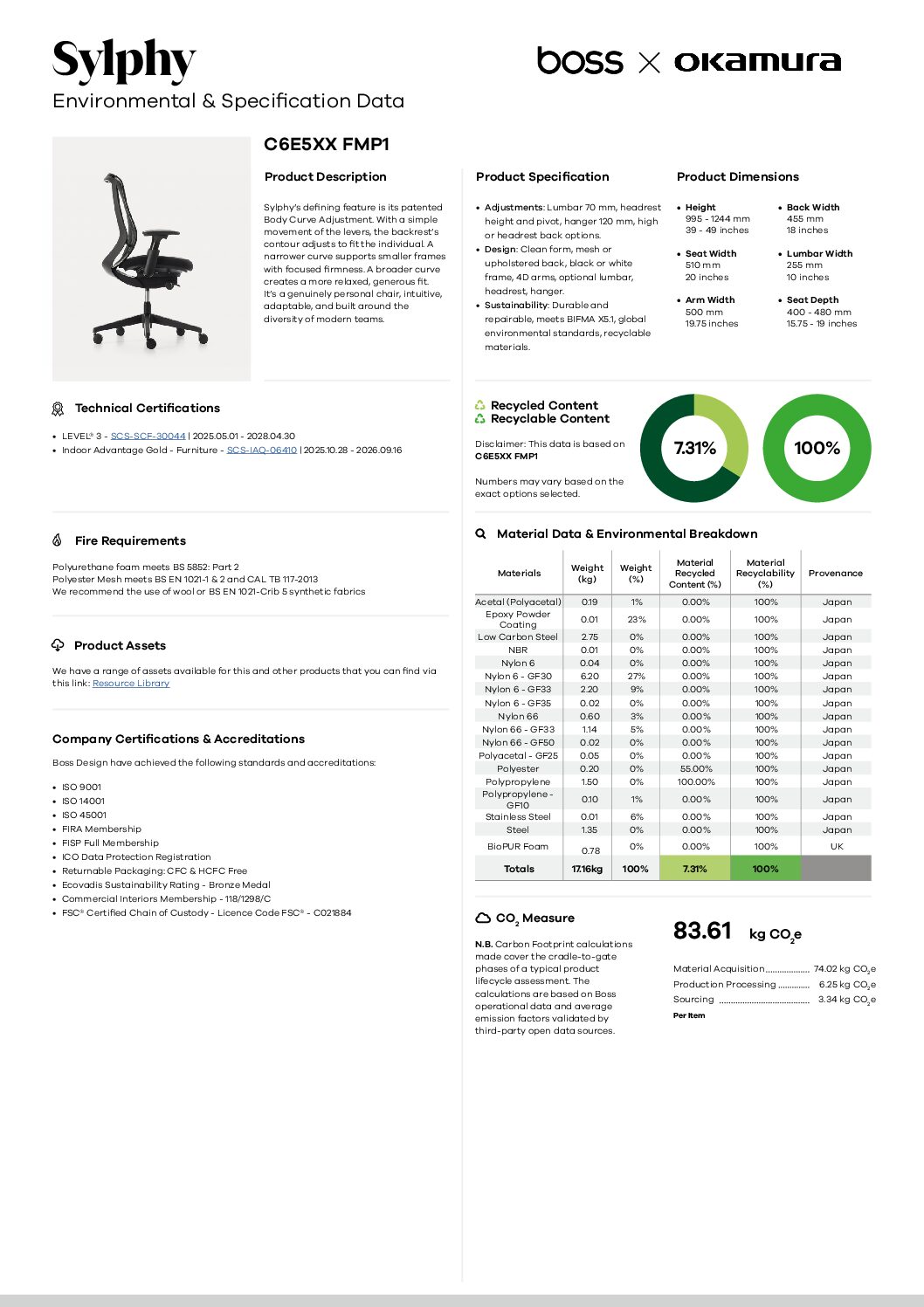 The Okamura Sylphy office chair’s defining feature is its patented Body Curve Adjustment. With a simple movement of the levers, the backrest’s contour adjusts to fit the individual.