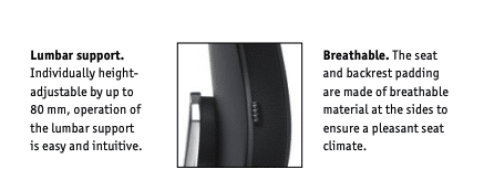The patented Sedo-Lift mechanism also contributes towards the excellent seating comfort. It is used to adjust the seat height easily continuously and free from wear. At the same time the Sedo Lift mechanism guarantees a soft pleasant suspension regardless of the chosen seat height.